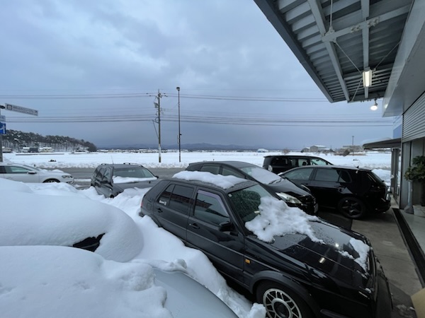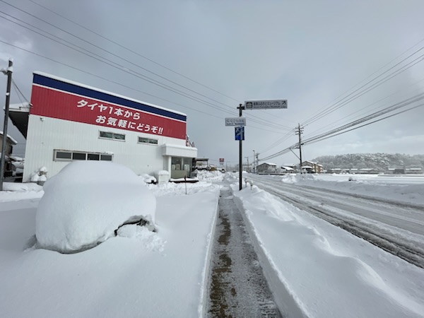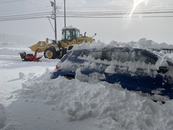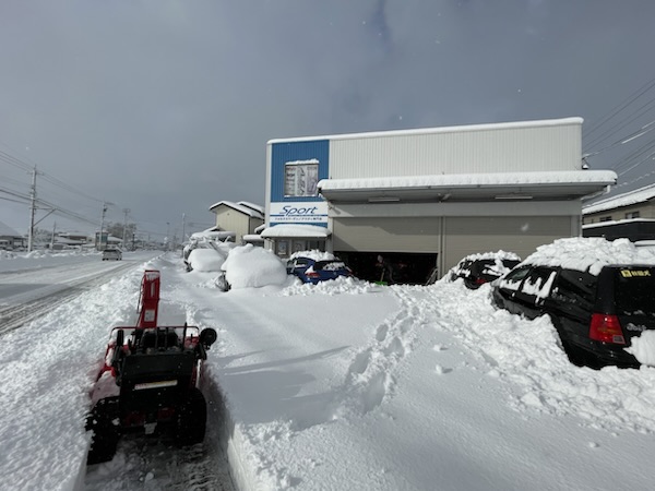 日曜日の朝に降った雪で早朝より除雪機で除雪を始めて13時くらいまで自宅近辺~お店までを行い