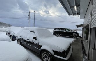 おはようございます。今朝は4時に起きて除雪が必要かを見に外へ 雪が昨晩より降っていなかったのか5センチ程度の積雪でした。軽く雪かきをしてからお仕事開始です。こんな雪の中なので車検のお預かりの車両は早めにお返しするようにしています。雪道は慣れている車が安心だと思いますので。