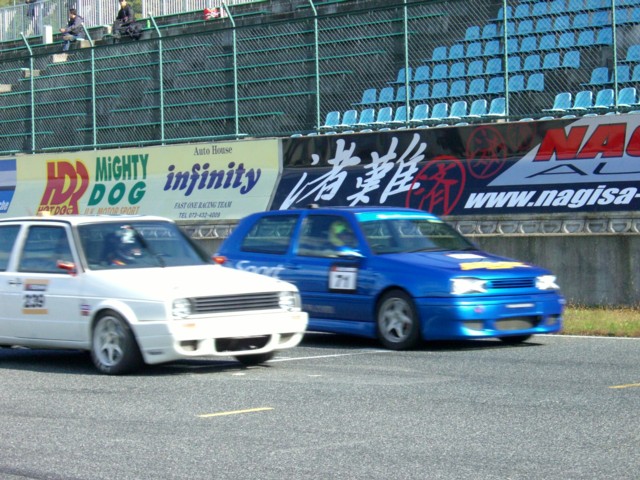 バックストレートでは僕の前のゴルフVが大スピン(かなりビビリました)