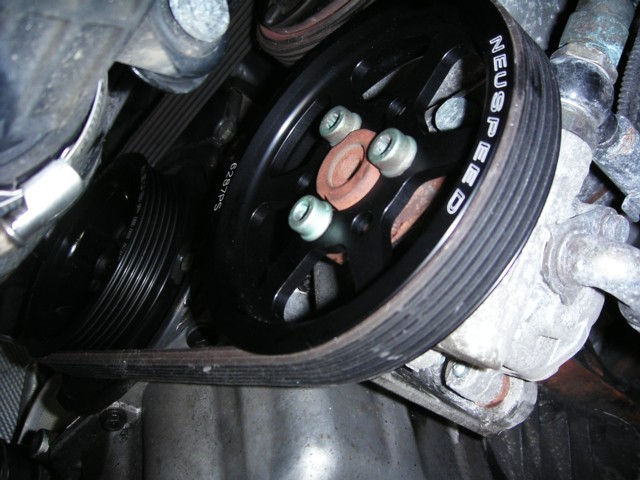 写真にあるウオーターポンプやダンパー、テンショナーも一緒に交換しNEU SPEED製のパワープーリーの取り付けもしました。