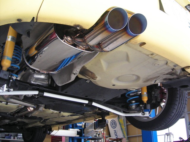 またまた、ビートル ターボです。 今回は、arc のパイプスタビとハイパーリンクの取り付けです。 よく曲がり、直進安定性もかなり良くなり、ハンドリングもシャープになりました。 乗っていて楽しい車になったと思います。 リアのスタビライザーも一緒に取り付けして、ついでにマフラーも交換しました。 ブルーウェーブのマフラーはほんとにきれいですね。