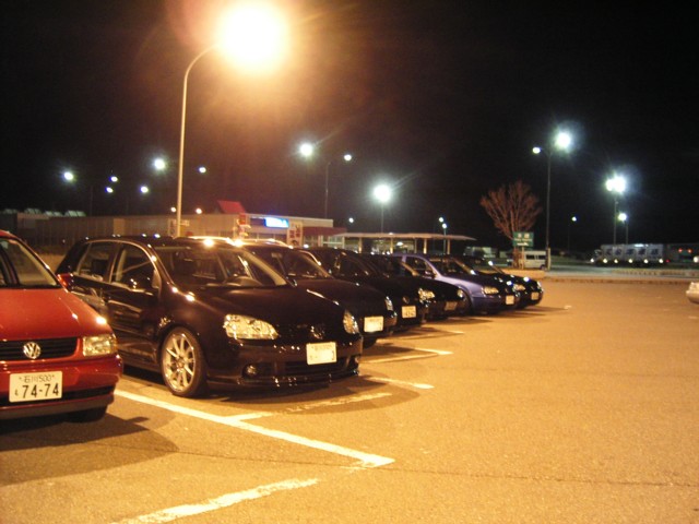昨日は、午後8:30からの夜会に参加してきました。 時間ちょうどに着いたのですが、すでに6〜7台のVW、AUDI が集まってました。最後には、13〜14台来てたと思います。 かなりドレスアップした車も多くなかなかの見ごたえがあり、初対面でありながら車の話で盛り上がっていました。 富山県や福井県よりはるばる来ているオーナーもいたり、マックや焼きそば食べてる人がいたり、結構、和やかないい感じでしたよ。 次回は、6月17日(土)の予定のようです。