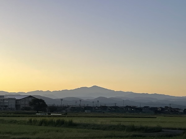 今日は快晴 朝の散歩では月と白山が見れました。