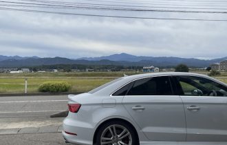 おはようございます。今日は快晴ですね。白山も綺麗に見えます。8S TTのグリル、リップ、サイドステップ、デフューザーの塗装を行いました。ピアノブラックでツルツルにしあげました。サイドスカートデフューザー色もまとまってカッコよくなりました。そしてディスプレイオーディオの取り付けです。