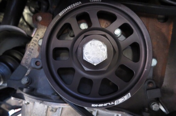 GOLF5R32にV6 ライトウェイト クランププーリーの取り付けです。